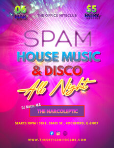 The Office is a night club, bar and entertainment lounge in the heart of the historical River District of downtown Rockford. The Office NiteClub is one of the longest running alternative lifestyle hospitality spots in the country. We are known for our vibrant dance music from top DJs every Friday and Saturday, our animated live shows and quality sound and lighting systems.